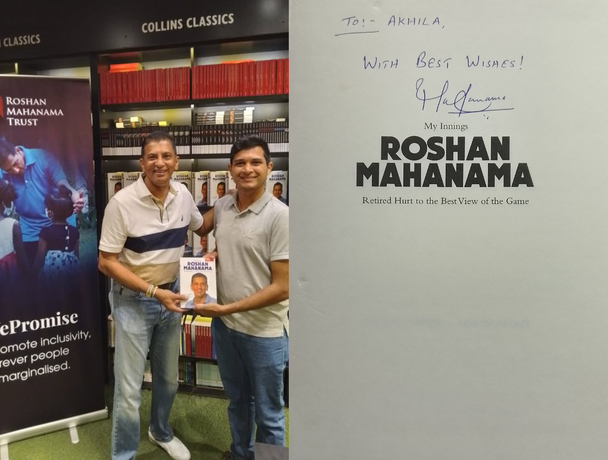 He also authored his biography "My Innings - Retired Hurt to the Best View of the Game", which was re-launched in 2023 under the 'Roshan Mahanama Trust' to help cancer patients in collaboration with the Indira Cancer Trust. Meeting him in person for even a short while truly gave the picture of why our parents' generation adored and called him a Gentleman.