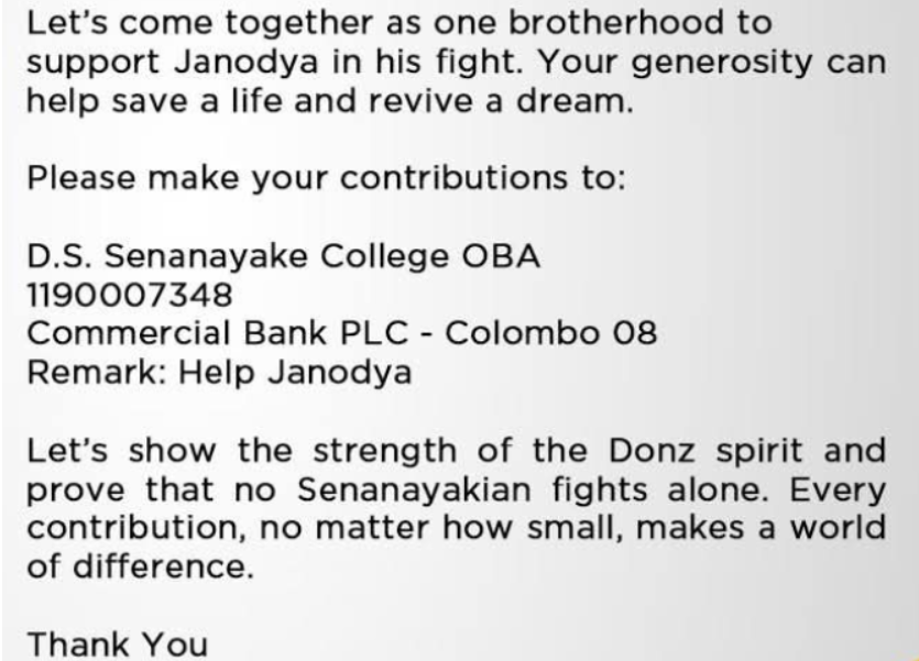 If you wish to make a meaningful donation to little Janodya's cause, you can do so by contributing to the DSSC OBA as below.